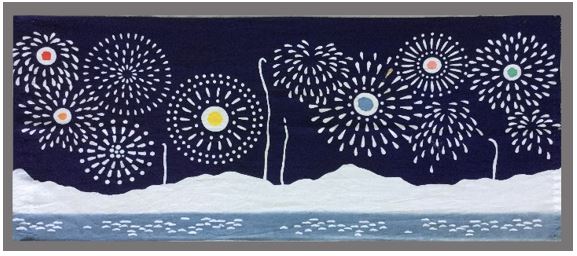 上の方のオレンジや黄色は模型用の砂を散りばめてあります。花火の雰囲気が出ているでしょうか!