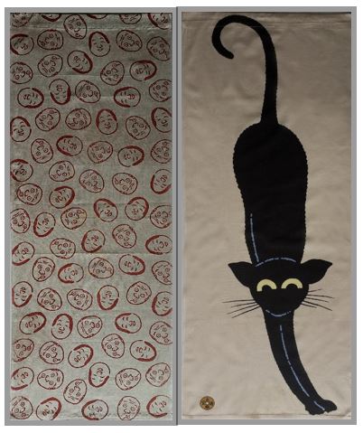 手拭いの暖簾(17)猫・おかめとひょっとこ