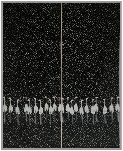 数ある手拭いの中で同じのが2枚あるのはこの図柄だけです。ペアに吊るされた迫力かも知れません。