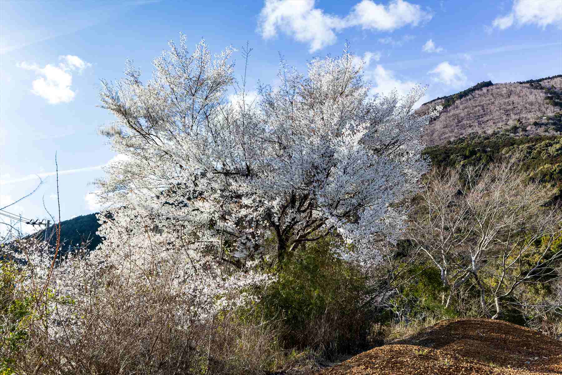 側に、私の好きな白い花を咲かせるヤマザクラがあるのです!