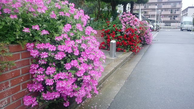 毎日ご苦労さんですねと言うと、「ペットの世話と違って、花の世話は自分のペースで作業できるので、楽なものですよ、ただこの時期は次々と雑草が繁ってきて、除草はモグラたたき状態なので大変ですね」との事。