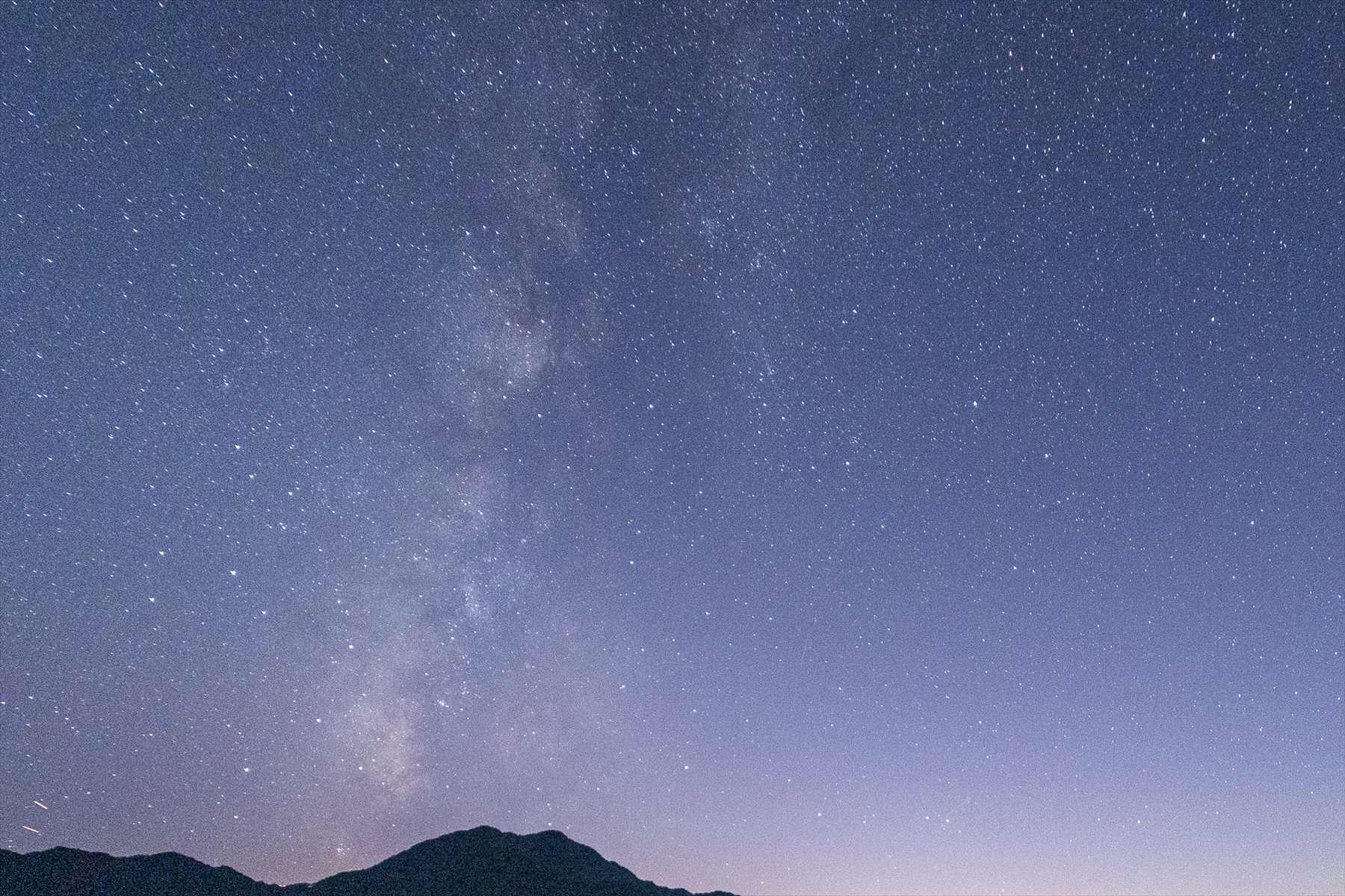 夕陽が沈み、夕焼けもほぼ終わろうとする頃、ブルーアワーと呼ばれる時間帯に突入すると、夕焼けの名残りと共に一族山の上に金星がハッキリと見え出し、天の川が薄っすらと現れ始めます。気になる、アトラス彗星はと云うと、天の川の二本の縦筋状になっている、短い縦筋の最下部に注目して下さい。判別が難し