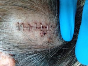血腫はそのまま様子をみて吸収されることは少ないので、ある程度の大きさであれば脳障害を残さないよう出来るだけ早期に手術をして除去するようにします.手術は普通、穿頭血腫洗浄除去術といって、局所麻酔をして頭蓋骨に約1.5cmの穴をあけ、そこから血腫を吸い出し、さらに血腫腔を生理的食塩水で洗浄するという方法です。うまくいけばわずか20分程度で終わり(私の場合、メスを入れてから27分でした)、高齢者や全身状態の悪い方でも安全に受けられます。感染や出血などの合併症がなければ、早ければ翌日には症状は改善し、1~2週間で退院も可能です。また再発率も約10%くらいです。但し、高齢者で脳萎縮のある方、合併症のある方、多房性血腫といって繰り返し出血していて血腫が何重にも形成されている場合は要注意です。