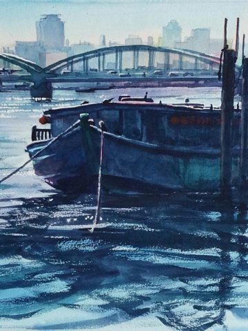 高校生の頃、県展を目指して油絵を描いていました。退職後、在職した会社のOB展に誘われて、伜が子供の時使っていた道具で水彩画を始めました。 水彩画は、扱い易い一方で、着色の手順、滲みやぼかしの表現、等々、描くたびに課題が生まれ、すっかり嵌まってしまいました。 最近は、主に風景を描いており、年に数回のグループ展と2回の公募展への参加で、モチベーションを保っています。 |