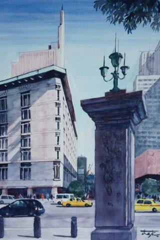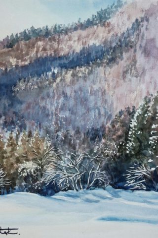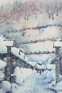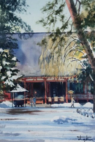 高校生の頃、県展を目指して油絵を描いていました。退職後、在職した会社のOB展に誘われて、伜が子供の時使っていた道具で水彩画を始めました。 水彩画は、扱い易い一方で、着色の手順、滲みやぼかしの表現、等々、描くたびに課題が生まれ、すっかり嵌まってしまいました。 最近は、主に風景を描いており、年に数回のグループ展と2回の公募展への参加で、モチベーションを保っています。 |