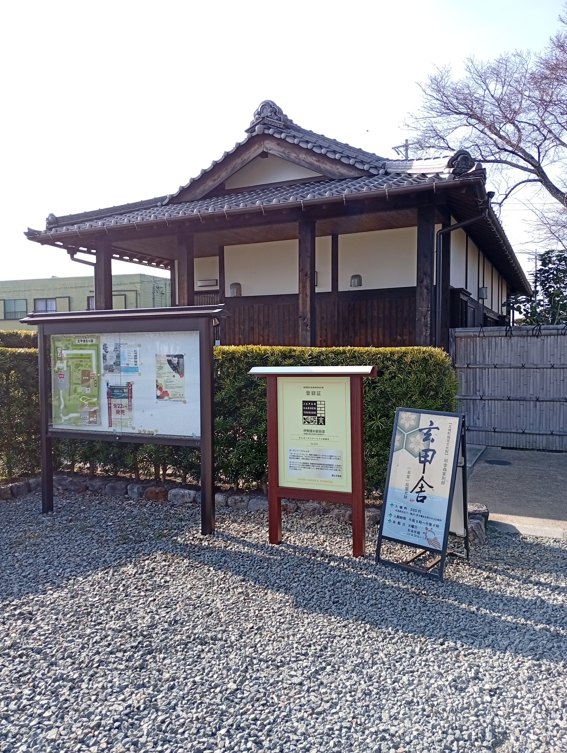 田丸城見学の後、次の電車まで少し時間があったので、観光案内のお勧めに従って、駅から徒歩約5分のところにある玄甲舎に行ってみることにした。これまで全く聞いたことのなかったが歴史的建造物だという。