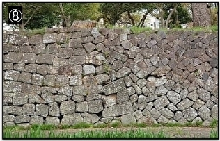 石垣の積み方の違いがはっきりと分かる場所。