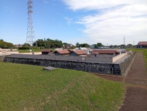 津城は、築城技術・城下町形成・地域文化の融合が見られる貴重な史跡であると聞いている。この城跡の見どころとしては、復元された隅櫓と本丸跡、高虎の銅像、 高山神社、石垣の積み方の違いなどが挙げられるが、この中で一番興味を惹かれるのは石垣の積み方の違いである。小雨降るなか、わくわくしながら見て廻ることに。津城の石垣は、築城時期ごとの技術的変遷を反映しており、野面積みから打ち込み接ぎ、切り込み接ぎへと進化した様子が見て取れる。