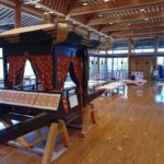 斎宮駅のすぐ目の前に大きな案内板とともに寝殿造りをモデルとした「いつきのみや体験館」があった。ここでは、季節に合わせた講座やイベントがあり、斎宮が最も栄えた平安時代の歴史・文化・技術などを身近に体験できるそうだ。部屋の真ん中に、斎王が都から乗ってきたという輿「葱華輦(そうかれん)」がでんと置かれ、奥の方では、平安時代の遊びのひとつ・貝合わせ「貝覆い」についての案内があった。また、別の部屋では、十二単の試着が行われていた。