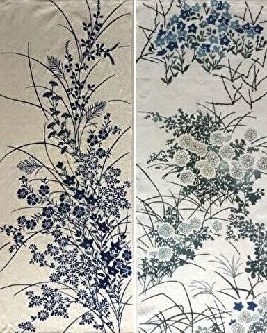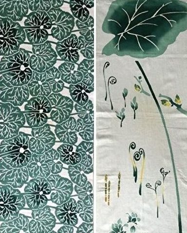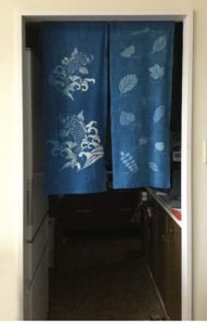 台所は食事を作る私の大事な居場所。きれいに片付いているのはほんの短い時間です。大抵は料理の準備と調理、後片付け!もう手の付けけられないほど散らかっています。 居間から丸見えの見苦しさを何とか隠そうと暖簾を吊るすことにしましたそれからはカフエカーテン・染めた物・織物・レース・縄のれんなど素材と色彩を替えて幾つも吊り変えていました。でも何となくしっくりと落ち着かないまま満足できないで過ごしていました。何年ものかなり長い月日だったように思います・・・ |