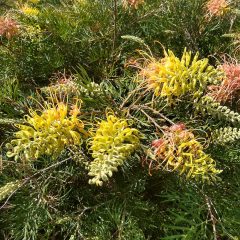 このグレビレア属は、ヤマモガシ科の常緑樹でオーストラリアの乾燥地に自生する種ですが、実に多種多様で、背が低くてグランドカバーに使う様なものから、20m位の大木に育つものもあります。