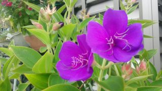 これはブラジル原産ノボタン科の花木、人目をひく鮮やかな紫色の一日花を、次々と咲かせる人気の熱帯花木。 草丈は低くて精々2m程度、夏の初めから晩秋までが花の時期です。