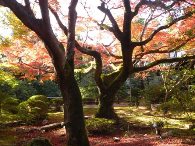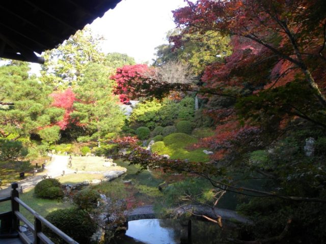 阪急河原町駅から、バスも使わず、ひたすら歩いて2万歩でした。「門跡寺院」と言うのは、門主は皇族であるか五摂家の子弟に限られ、最高の格式を持つ寺院で、皇居が何度か炎上した際には、当院が仮御所として天皇の住居として、使われていました。紅葉の名所とはされていませんが、青蓮院庭園は、小堀遠州を始めとする著名な人物の作庭で知られ、格調の高い優雅さで包まれています。