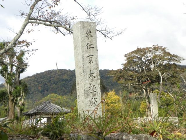1/2/3/4→「恭仁(くに)宮跡」京都木津川市、1,300年前の聖武天皇の時代、平城京から遷都され、僅か5年ながら「都」として存在した国の史跡。全く人影もなく、クマ出没注意の掲示に怯えながら、癒しの小径を巡ったが、所々に基石と石碑が残っているだけで、早々に退散。