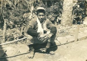 =庭先で休憩中の兄を写す、写真を撮られるのがあまり好きでなかった兄の珍しい1枚=